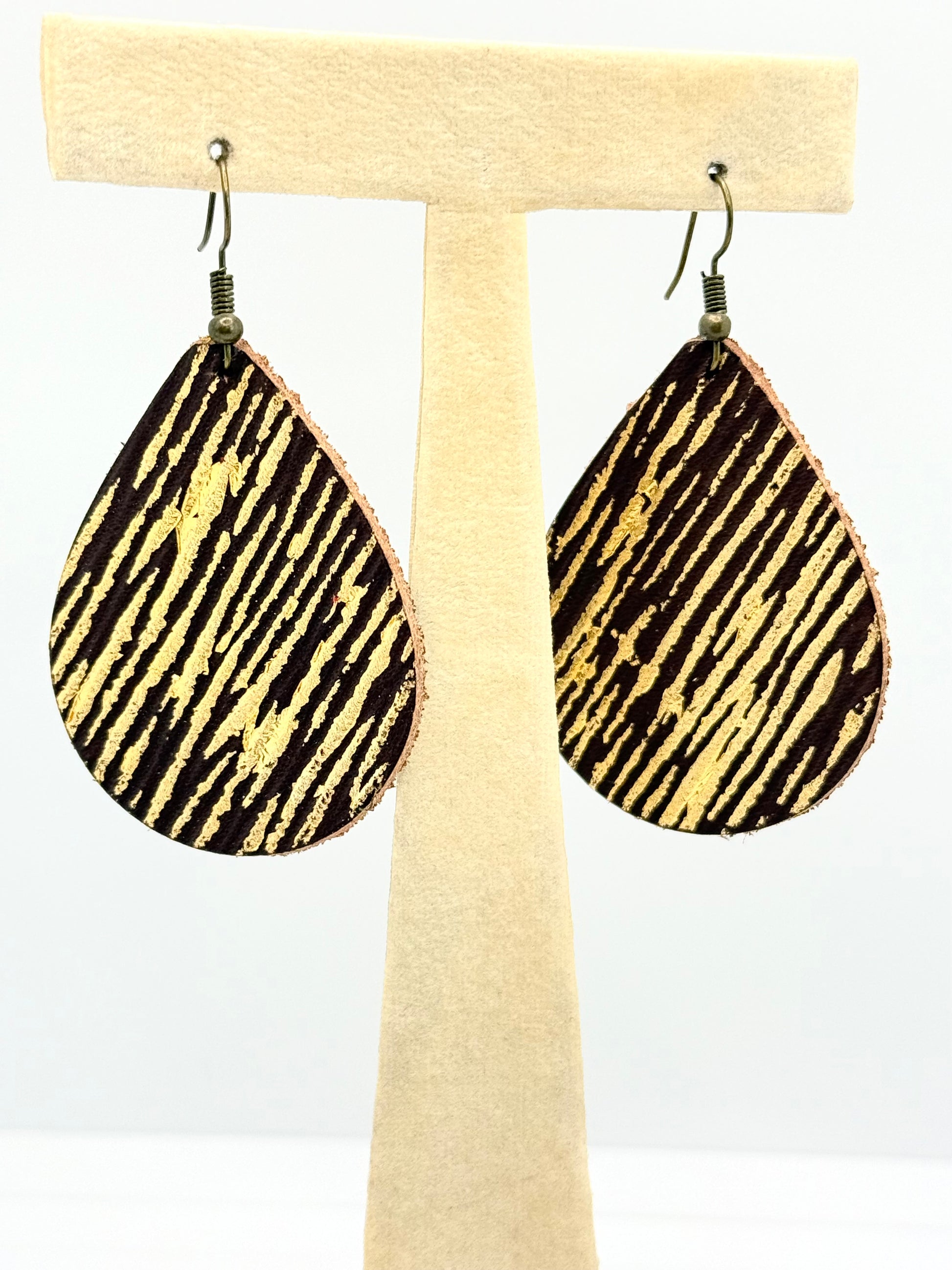 Discover the artistry of Colorado craftsmanship with our Handcrafted Smooth Leather Earrings with gold accent texture. Made by a talented local artisan, these lightweight earrings showcase the beauty of smooth leather in a sleek and versatile design. Hanging at about 2 inches long and approximately 1 1/2 inches wide at their widest point, they offer a statement-making accessory that's effortlessly comfortable to wear.